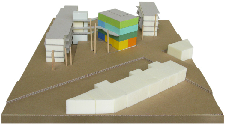 Außenerschließung mit den bestehenden Zeilenbauten verbunden, um eine